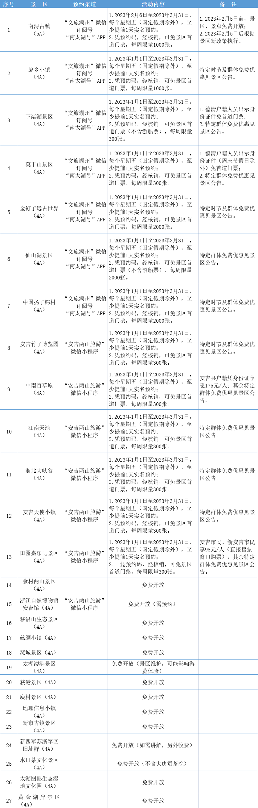 除此之外,牛头山景区、浙东休闲家具城、下涨、丁公园、岭根、延恩、国华珠算博物馆、黄土岭等其余8个A级景区也在2023年一季度向全国游客免费开放。