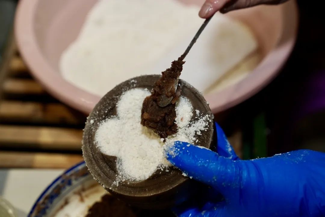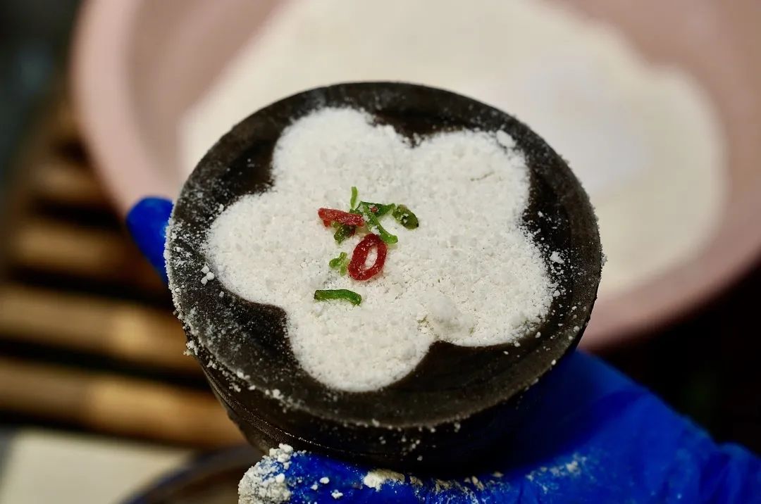 定胜糕属于传统苏式糕点,很多地方做的都是银锭形状的,但乌镇定胜糕的做法却有些不同。一个荷花形的小罐子,里面填上梗米粉、糯米粉,中间塞上甜甜的豆沙馅儿,放在一个小蒸灶上蒸。