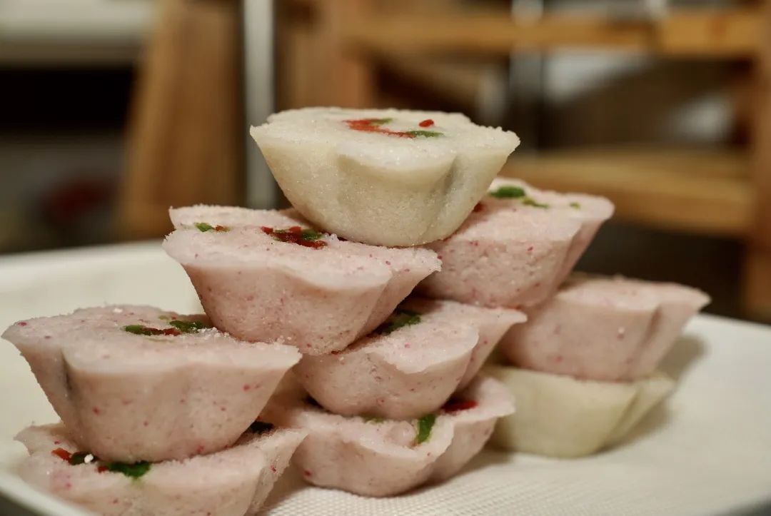 店里蒸汽腾腾、米香飘溢,食客的脚步哪里还挪得动!掏钱买单,等着蒸笼揭开,拨开弥漫的雾气,那小小的一块定胜糕,看上去甚是可爱,尝起来香糯可口,甜而不腻。