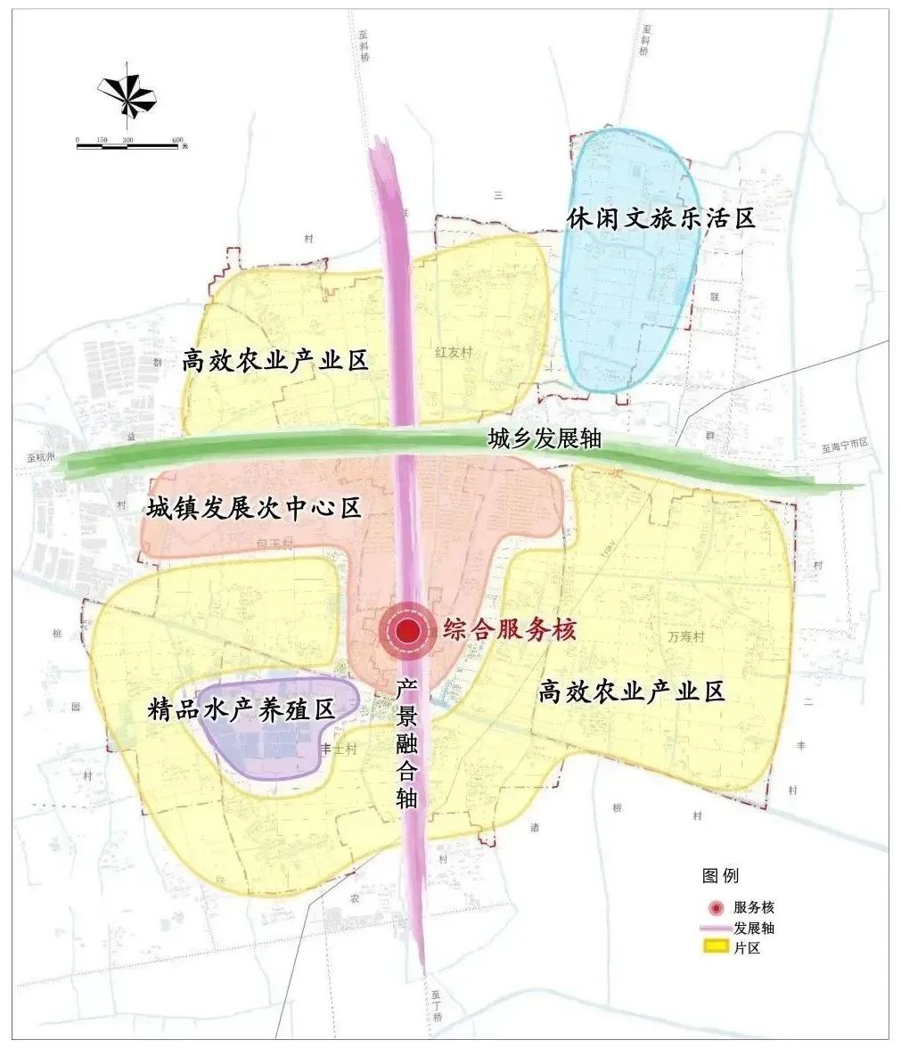 四区:即城镇发展次中心区、高效农业产业区、休闲文旅乐活区、精品水产养殖区。