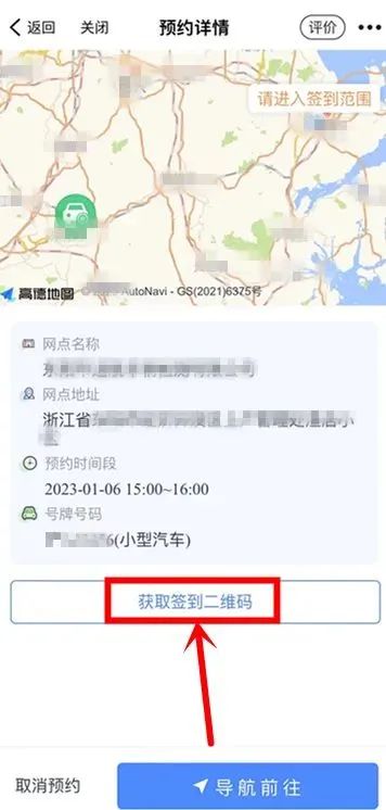 点击“获取签到二维码”,进入浙里办人脸比对,通过后获得预约码。检测站凭预约码上线登录检测。