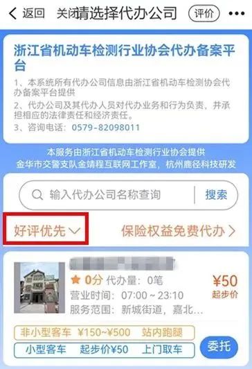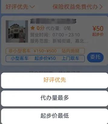 可根据选择好评优先、代办量最多、起步价最低等标准进行选择。
