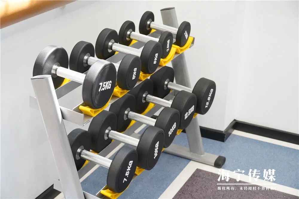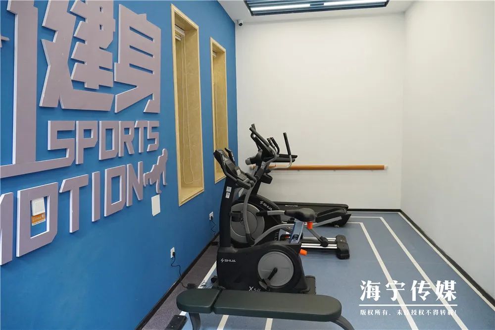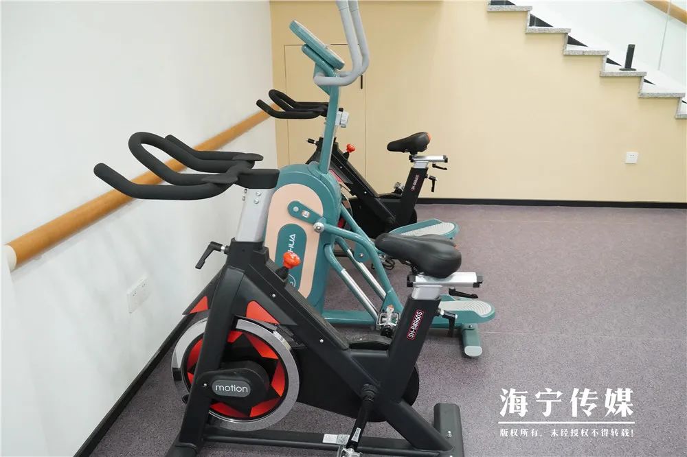 一楼的健身活动区,是附近居民们最近一段时间茶余饭后休闲运动的好去处,设有健身器材、舞蹈房、乒乓球室等区域,其中健身器材区内跑步机、椭圆机、动感单车、哑铃杠杆等专业健身器材十分齐全,搭配上清新活力的色调氛围,让这里少了一些商业气息,多了一丝群众基础。