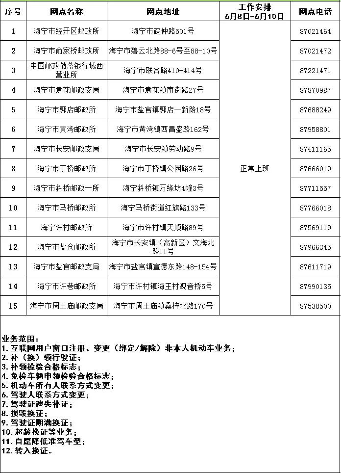 各公安派出所及交警中队交管业务服务窗口端午期间暂停办理业务