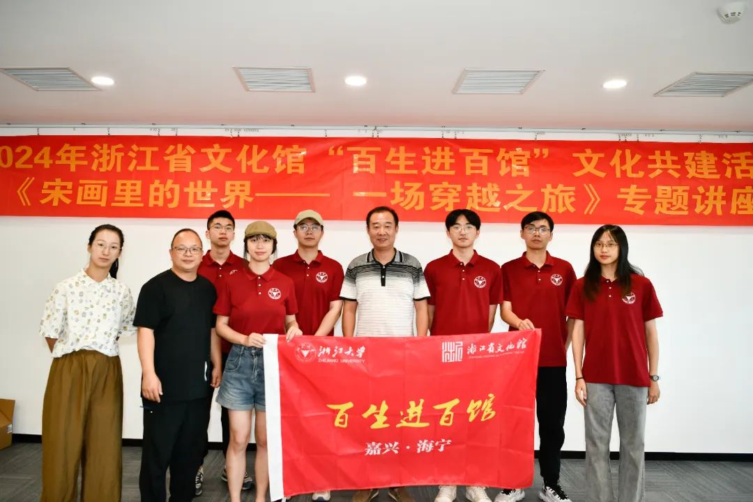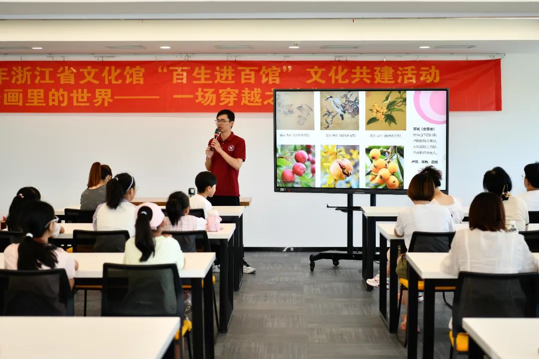 8月19日下午,浙江省文化馆与浙江大学联合组织“百生进百馆”文化共建专项社会实践活动走进海宁斜桥,来自浙江大学的文学爱好志愿者为40余名斜桥镇青少年带来了一场生动活泼的《宋画里的世界——一场穿越之旅》专题讲座。