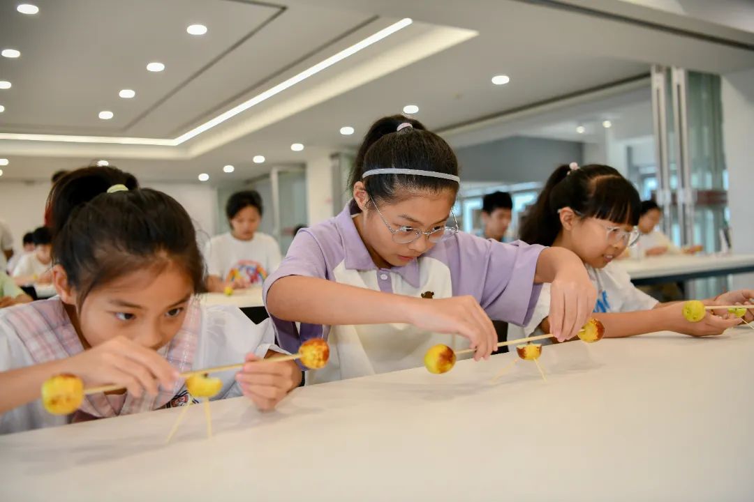 讲座中,北宋苏汉臣绘制的《秋庭婴戏图》吸引了大家的关注,画中的一对姐弟正在专心地玩着推枣磨游戏。随后,青少年们也在浙大学子的带领下,开始制作游戏道具,穿越回千年之前,从古人的游戏中体会乐趣。