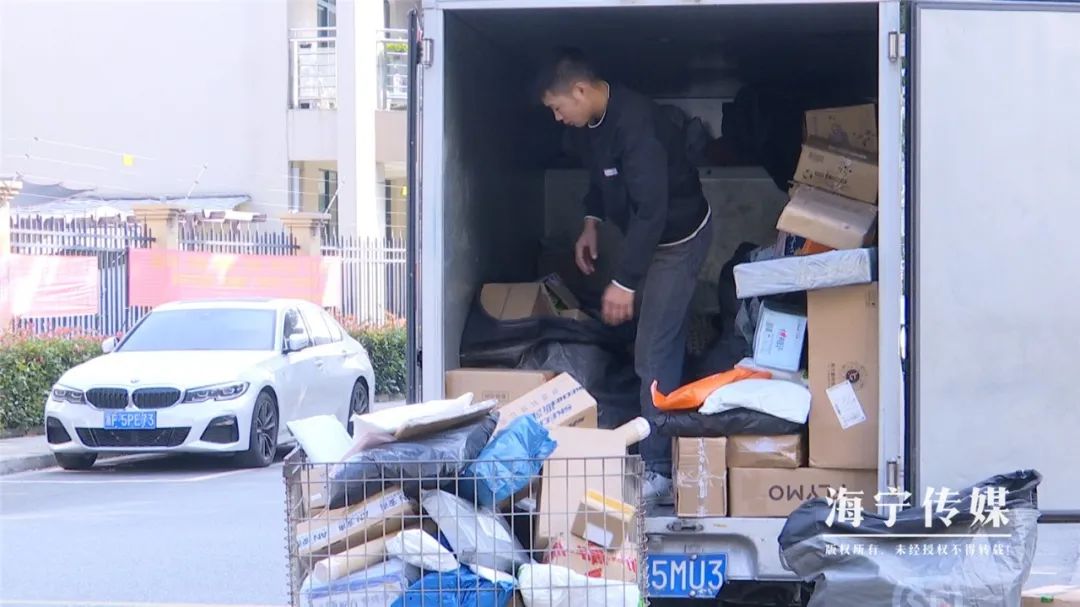 在不远处的快递站门口,另一位快递员施豪杰同样忙着分拣,为接下来的送货上门服务做准备。他笑着说:“