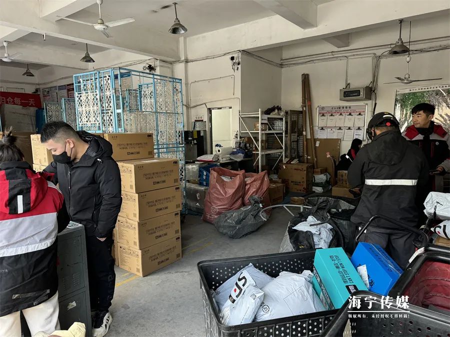 1月的海宁低温依旧,上午9点,在顺丰速运国榷路店,现场气氛火热。快递员们全副武装,把快递一件件收整完毕,准备派发出去。大潮君注意到,有不少包装上明晃晃写明了是年货,这一筐筐一箱箱的快递,承载着市民朋友对于新春的期待,而忙碌的网点,正快马加鞭推进着包裹的“回家之路”。