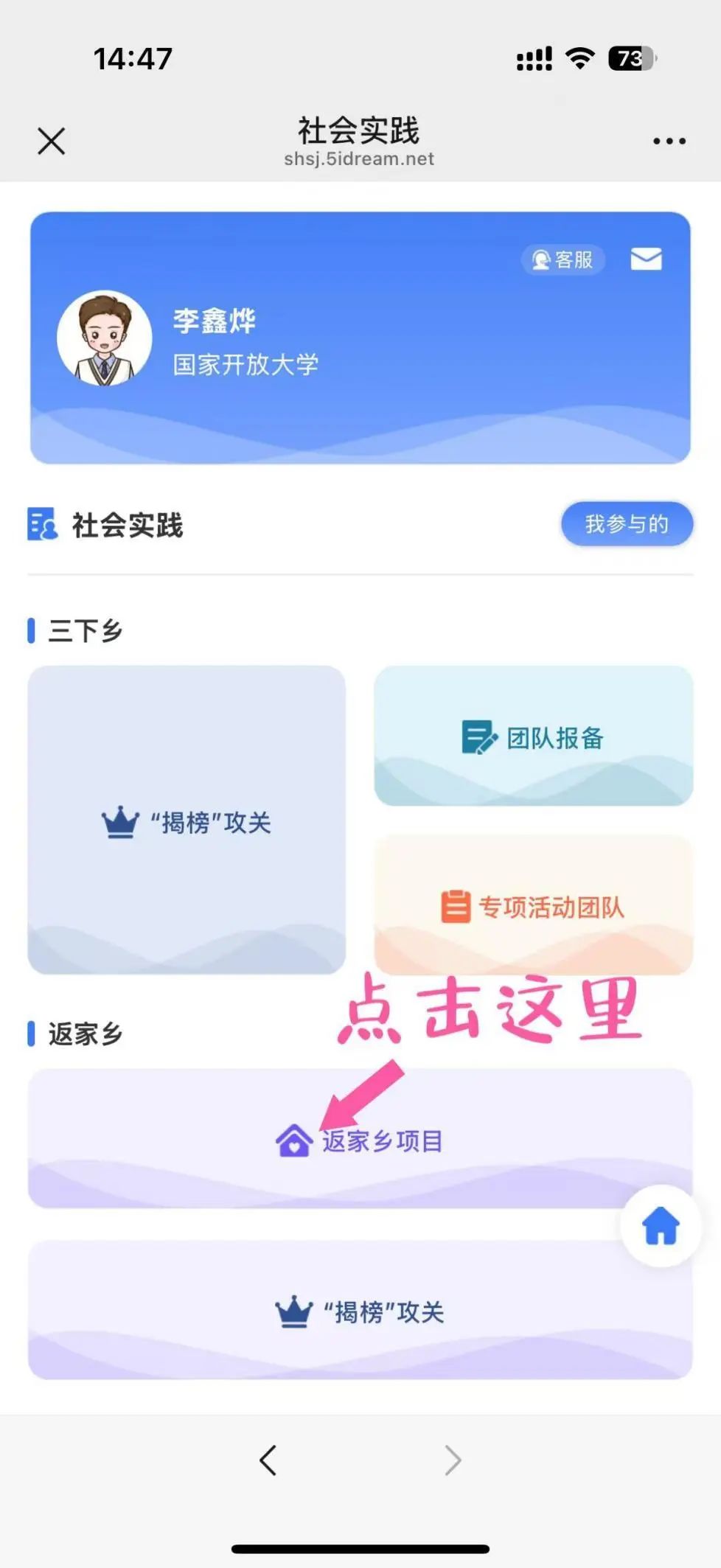 1.在团中央“创青春”公众号,选择“社会实践”-“报备入口”。