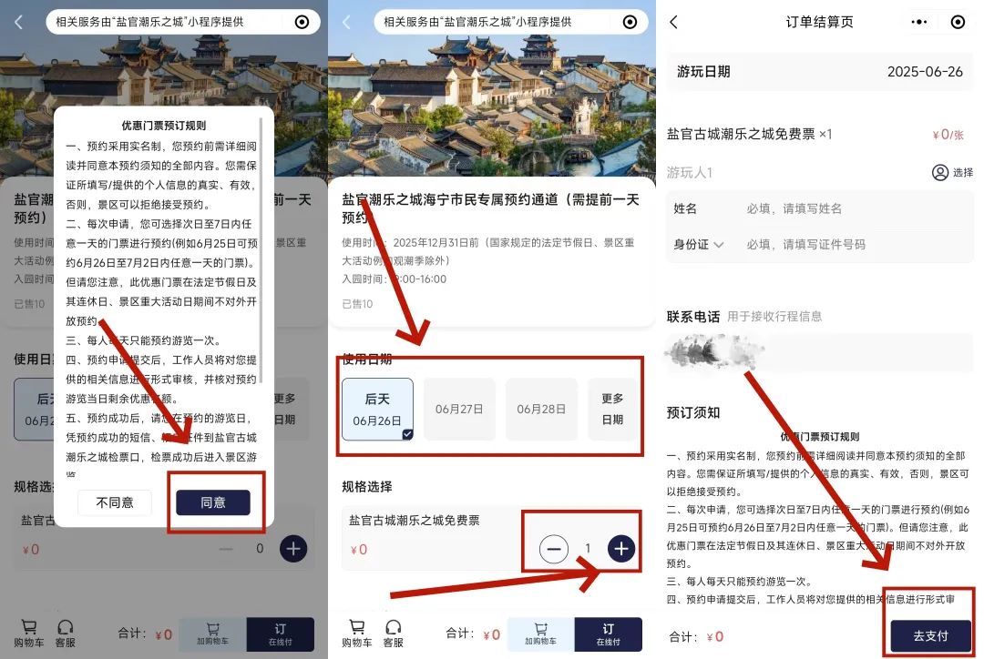 ✔线上预约:持海宁市有效身份证的本地居民可提前通过大潮APP或景区官方小程序进行门票实名预约。