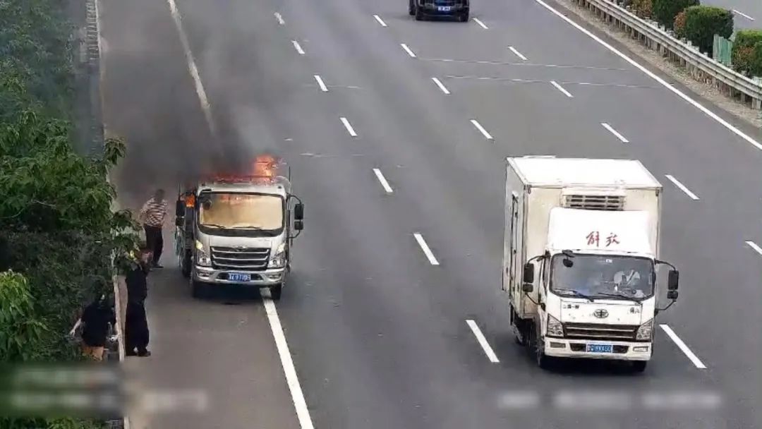 嘉兴高速交警支队一大队交警 夏明根:起因是驾驶员自己抽烟的时候,把烟头通过车窗,向外面扔出去,风一吹,正好又吹到了车厢里面,车厢里他拉的东西外包装又是易燃物品,那么就引发了个小火灾,这种事情,在高速公路上已经不止一次出现了。
