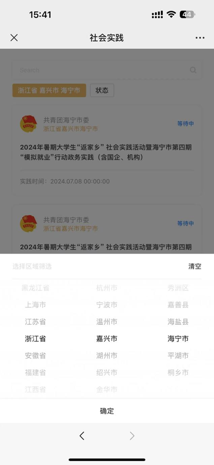 4.点击岗位列表,将区域选择为浙江省嘉兴市海宁市。