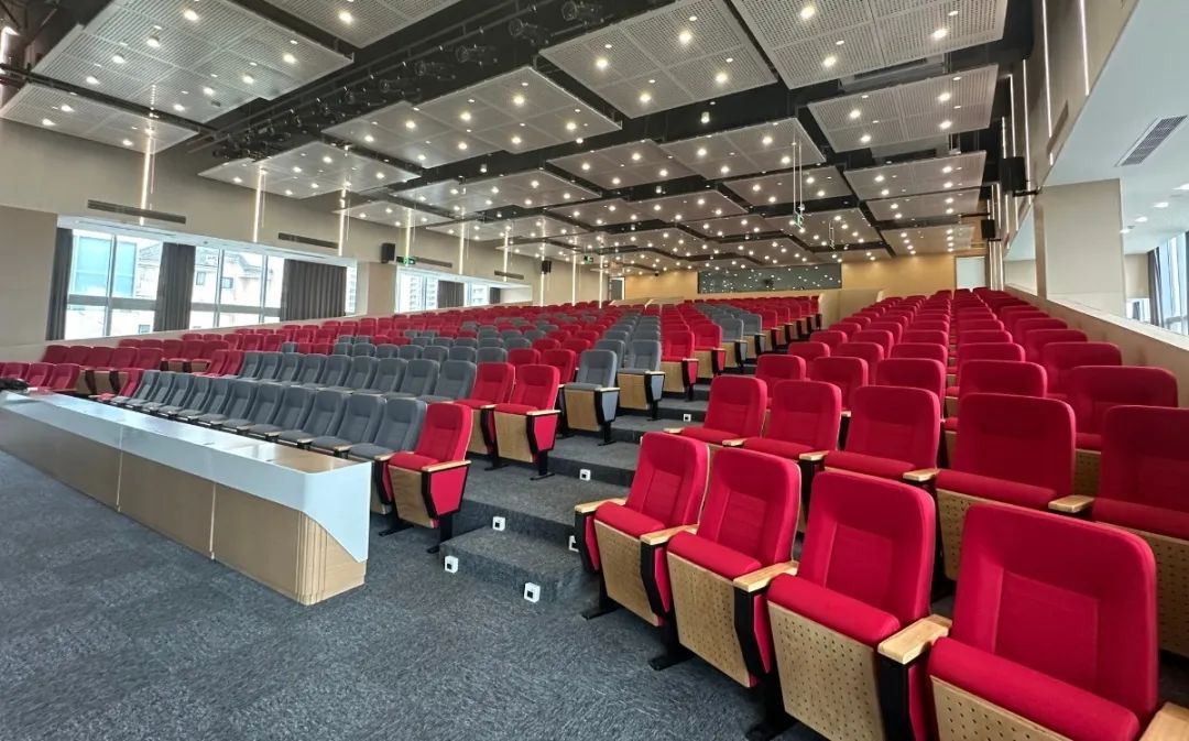来到顶层五楼,这里有可容纳370人的大型会议厅,会议厅配备灯光音响以及大型显示屏,可在会议与演出两套模式中切换,本层为斜桥党员群众演出展示提供了新平台。