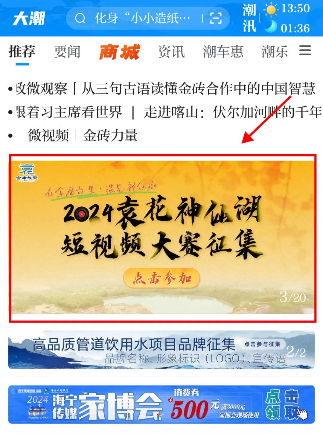 参赛作品在抖音、快手或小红书等短视频平台发布,并带上话题#在金庸故里·遇见神仙湖#。视频发布后,需通过大潮APP报名页进行参赛作品投稿。