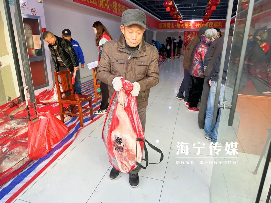 “这还是头一回分到猪肉呢!拿回家正好腌制起来,过年吃。” 居民祁文潮笑着将猪腿扛在肩头,步伐轻快地往家走。