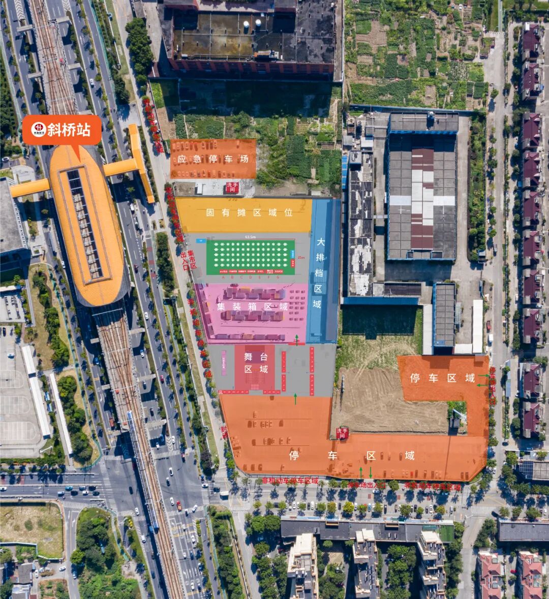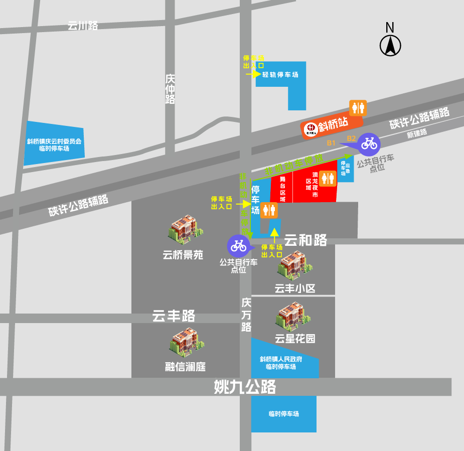 活动现场周边设有多个临时停车场以及非机动车停车区域,供您参考: