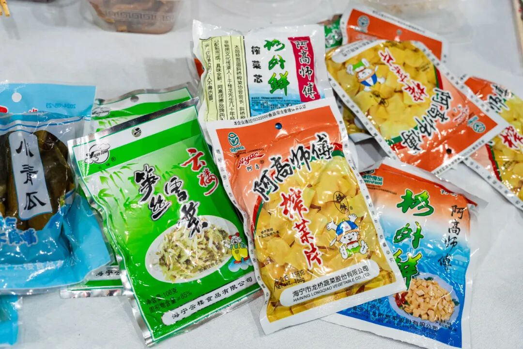 ●斜桥农特摊位:涵盖本地酱菜(斜桥榨菜、博鸿食品)、水果(翠品家庭农场、欣兴果业)、手工编织(华丰村“蒲公英”共富工坊)、豆制品(庆云桥千张)等,满足不同口味和购物需求。