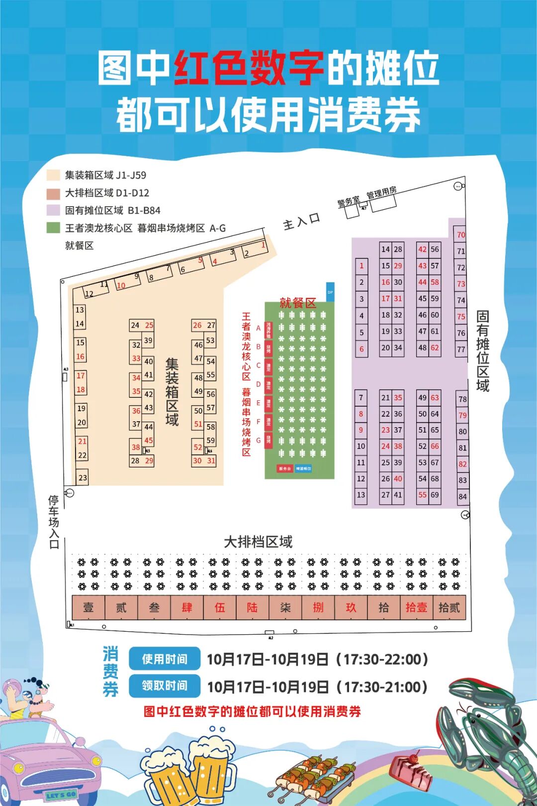 此券可用于“‘虾’路领鲜 味动斜桥”斜桥镇第四届澳龙小镇龙虾推广活动期间所有纳入摊位(标红摊位);