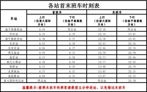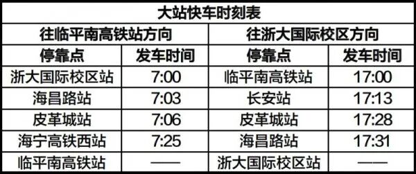 每日各站首末班车及大站快车时间如下: